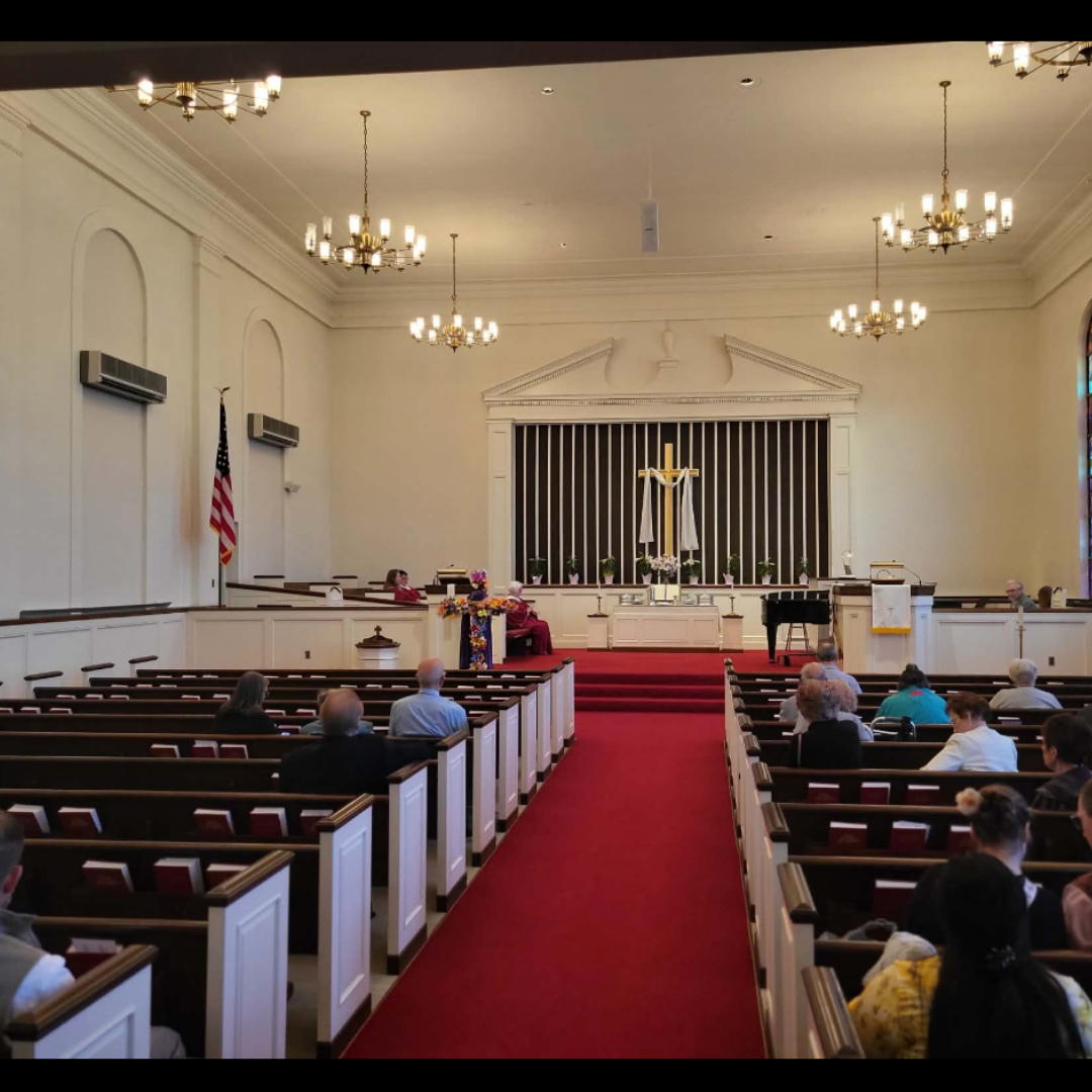 At 10:30 am, our worship service begins with a processional hymn led by our choir as they enter the sanctuary, with the whole congregation joining in. We continue with brief announcements, along with sharing praises and prayer requests.